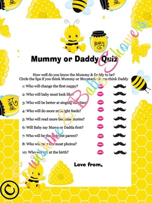 Baby Shower Game Mummy Or Daddy To Be Quiz Busy Bumble Bee 20