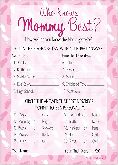 Who Knows Mommy Best Girl Baby Shower Game Distinctivs