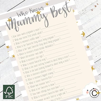 Baby Neutral Who Knows Mommy Best Cards Baby Shower Game Set