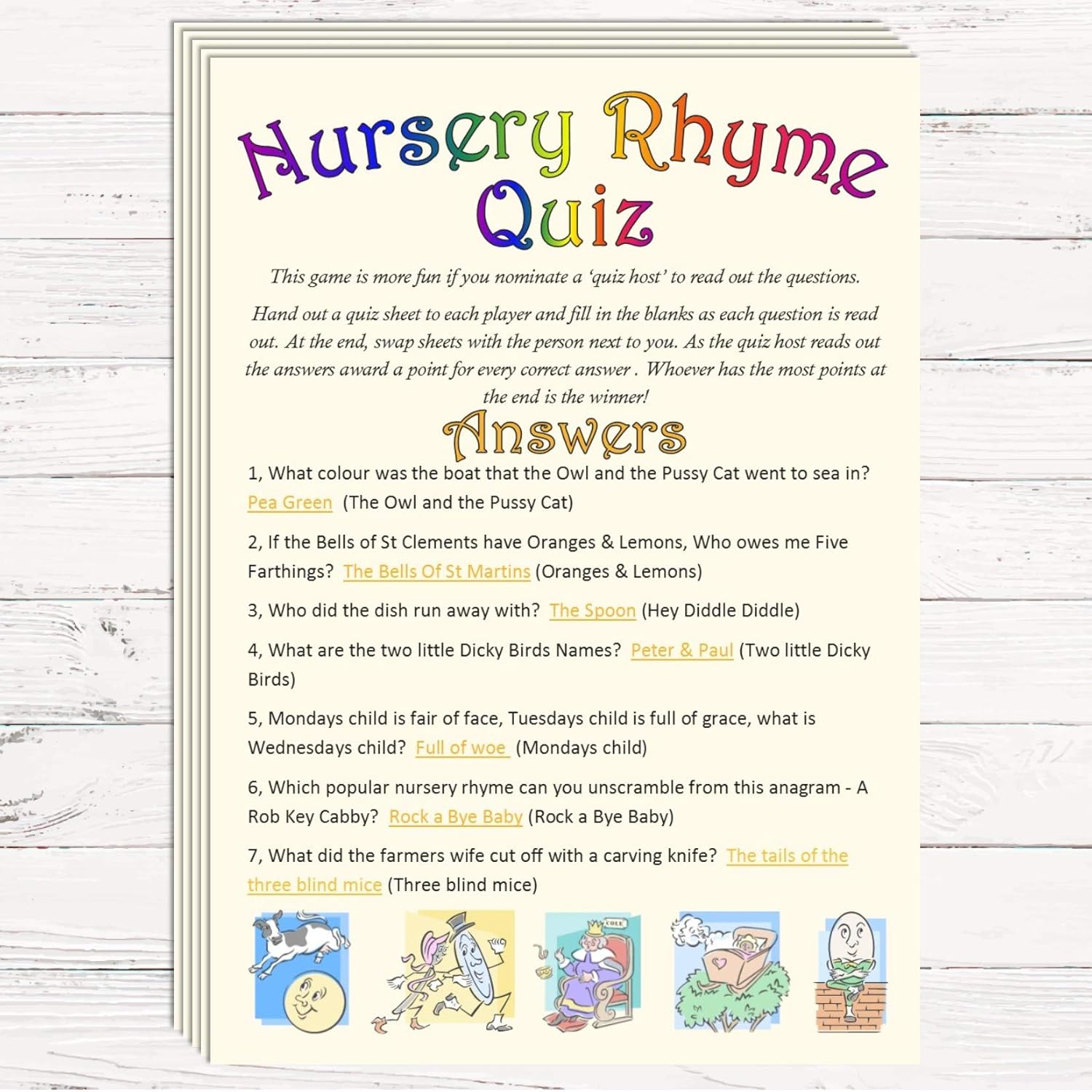 Baby Shower Game Nursery Rhyme Quiz 10 Guest Pack Amazon Co