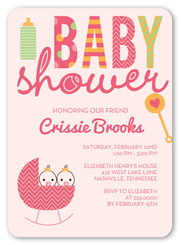 Cute Cradle 5x7 Girls Baby Shower Invitation By Hello Kelle