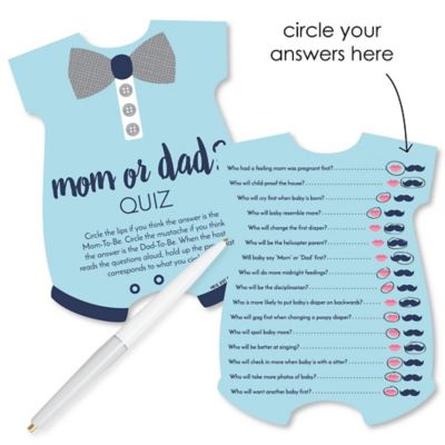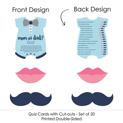 Baby Boy Mom Or Dad Quiz Cards With Mustache And Lip Cutouts
